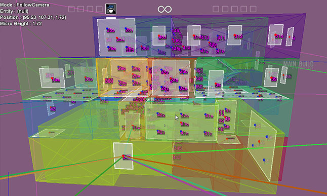可破坏的游戏环境是声音传播过程中面临的重大挑战之一。虽说理论上是通过最短路径传播声音,但实际操作中让关卡自己修正传播路径是我们以前从未做过的事情。除了渲染质量之外,从CPU性能的角度来看,这也是非常具有挑战性的。我们在所有“可破坏”的表面上放置了一些节点,并让这些节点保持关闭状态,直到发生破坏。我们在所需的粒度上进行了许多迭代,以找到精度和性能约束之间的最佳平衡。