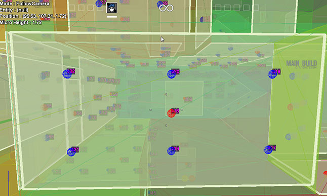 另一个有趣的因素是游戏中声音传播路径的修正不止一种方式:节点可以从关闭状态打开,也可以从打开状态关闭。借助路障和墙体强化装置,玩家可以修改潜在的声音路径,而算法将重新实时计算出新的传播路径解决方案。这些遮挡物(例如,路障,墙壁强化物等)不一定完全关闭这些传播节点;这取决于它们的材料特性(例如,木头,玻璃,混凝土等),它们可以使声音通过时产生一定的损耗。例如,木质路障和金属路障都有自己的障碍物损耗参数,所以我们可以根据使用的材料或多或少地减弱声音。