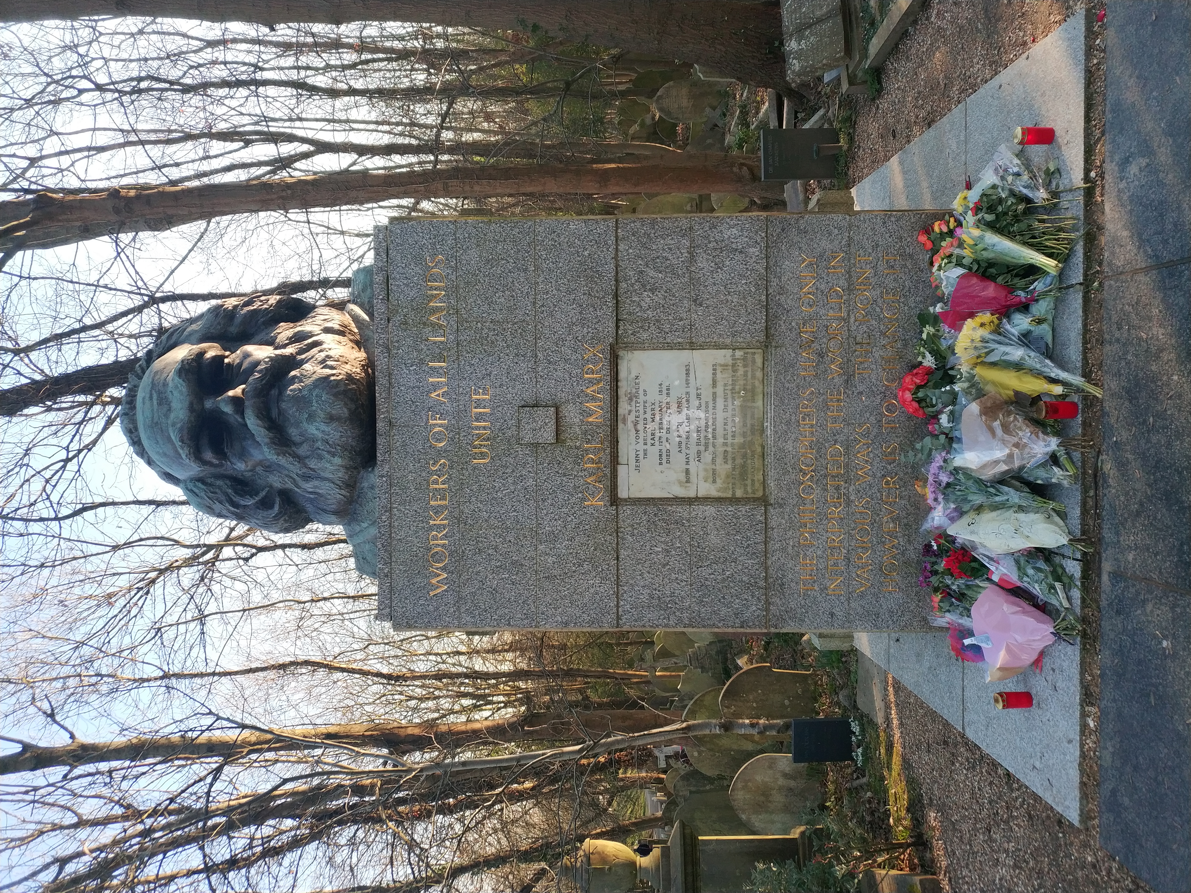 去威尔士拜访老友。顺便去伦敦的海格特公墓,瞻仰导师 罗塞塔石碑 摄于大英博物馆 海格特公墓的草坪 在墓地门口的花店,买了一束花 墓地的甬道 马克思的纪念碑 地上摆放着许多花束,墓碑上刻着,“全世界的无产者,联合起来” 马克思的墓穴。 我们本不知道上图其实只是纪念碑,是一对中国情侣告诉我们,马克思埋葬在墓园的深处。沿路看到许多来瞻仰的游客,基本都是中国人